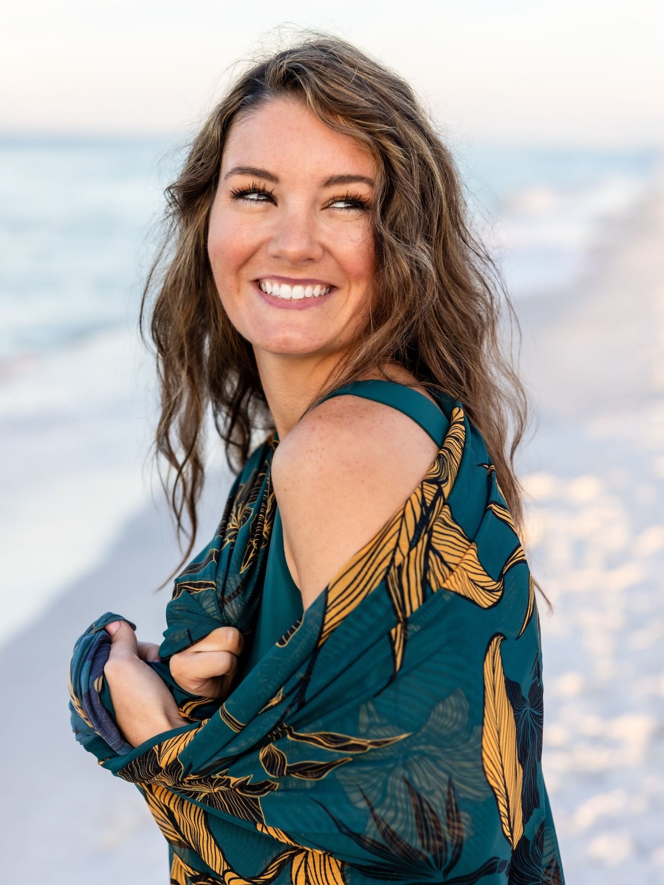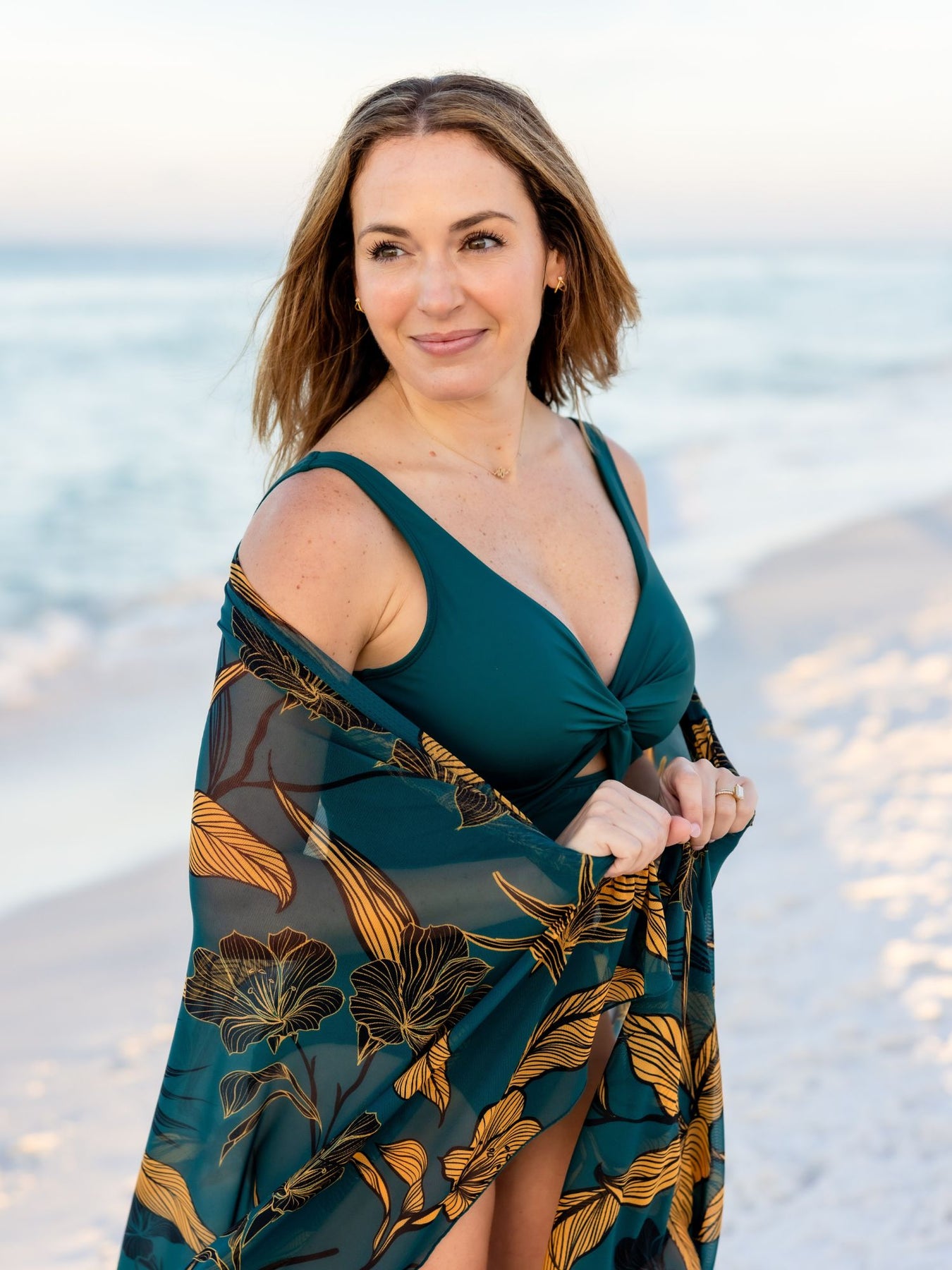 Navalora Swim Women's Emerald Enchantment Mesh Sarong – women's swimwear, Worn on beach in Florida